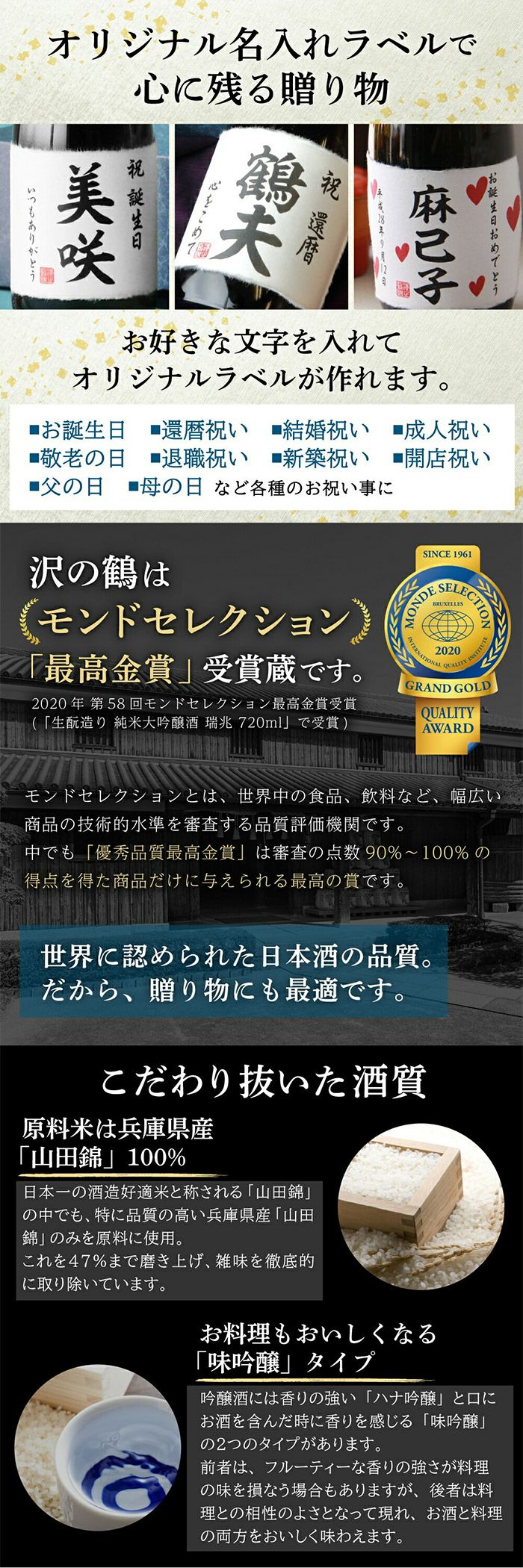 沢の鶴のこだわりのお酒